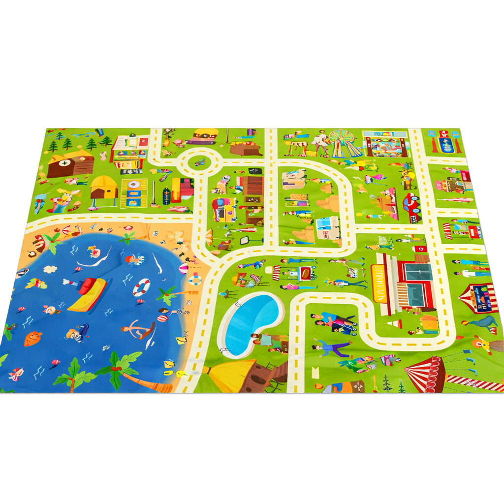 Offrez à votre enfant un espace de jeu interactif et amusant avec ce tapis circuit parc et ville. Illustré avec des routes, un parc aquatique, des attractions, des bâtiments et des personnages, ce tapis permet aux enfants de créer leurs propres aventures et histoires.