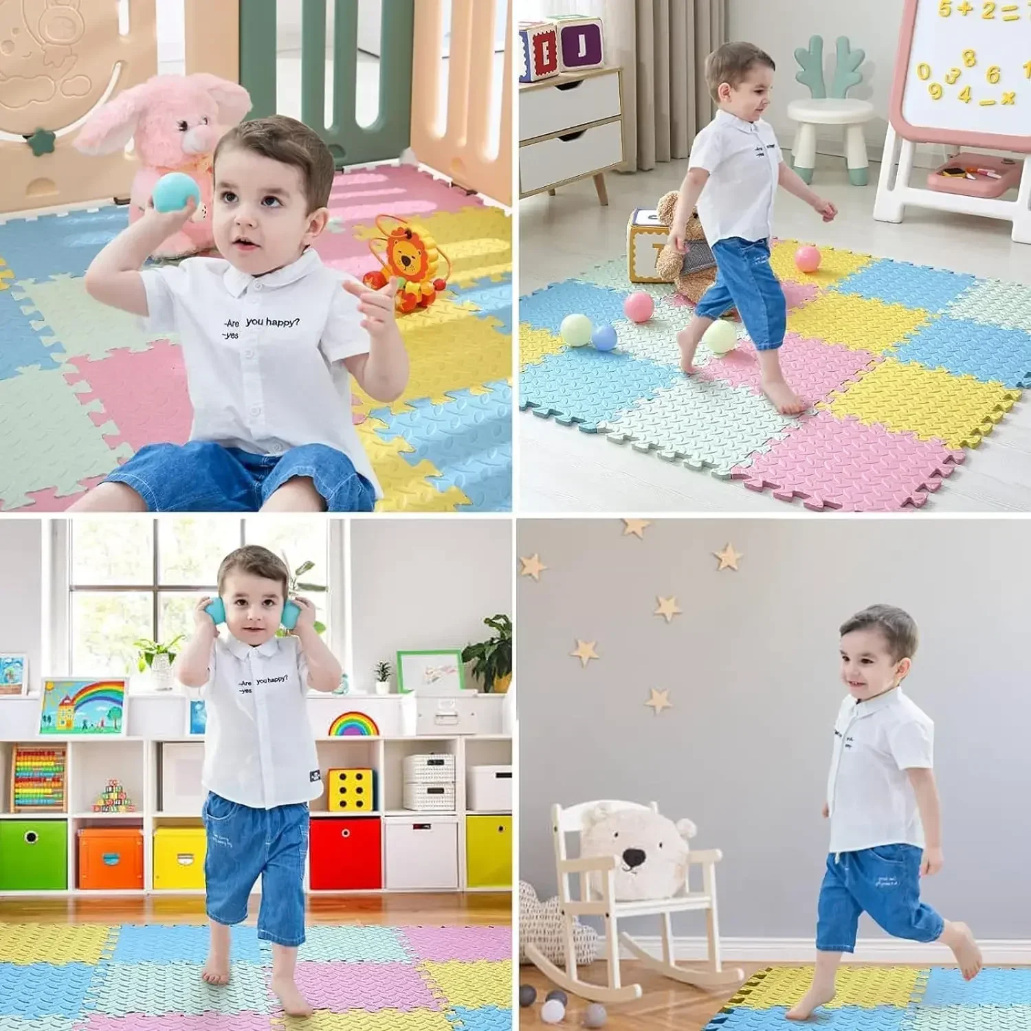 Offrez à votre enfant un espace de jeu confortable, sécurisé et évolutif grâce à ce tapis de jeu en mousse composé de dalles puzzle emboîtables.