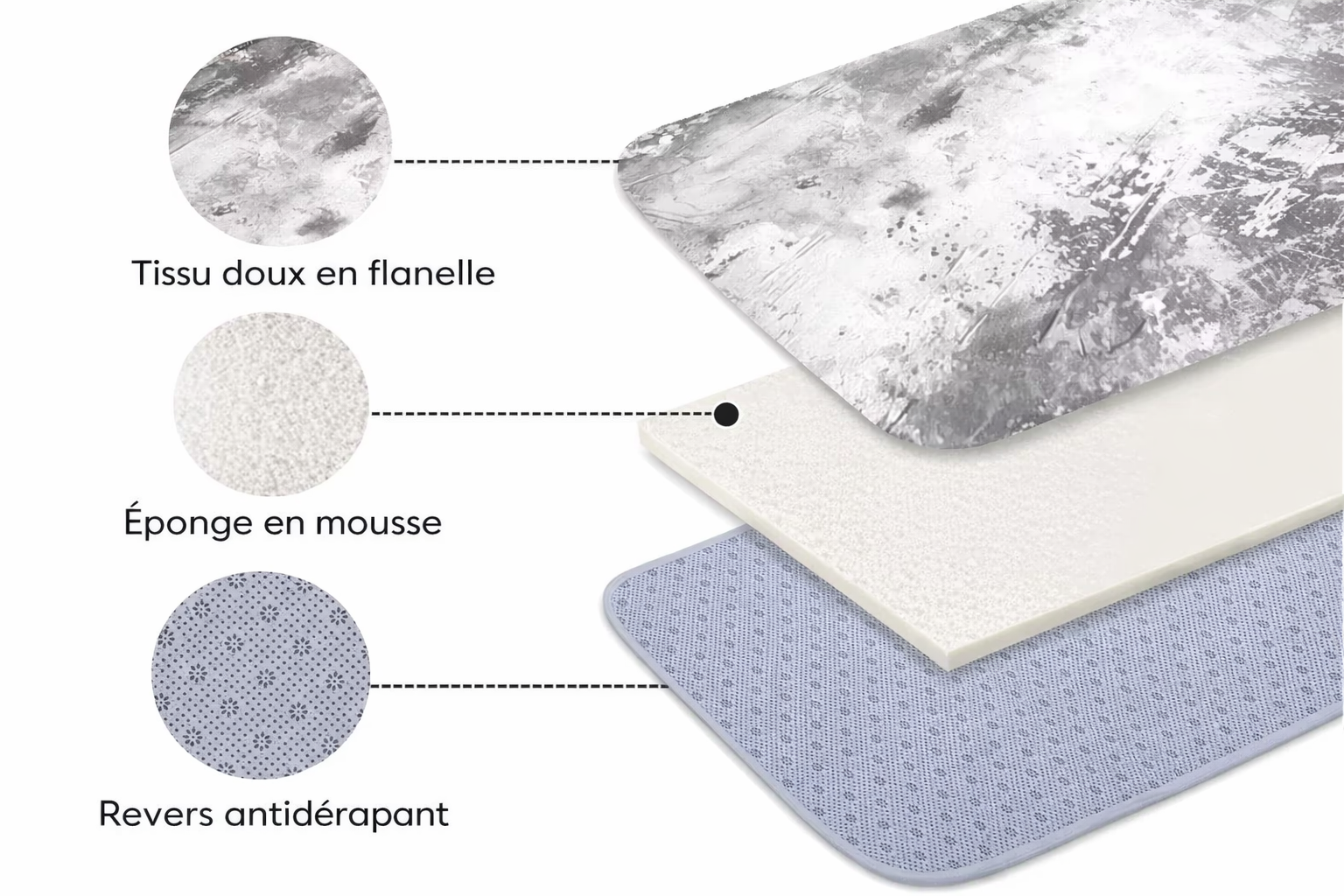 Matériau : Tissu, fond en PVC, flanelle, éponge