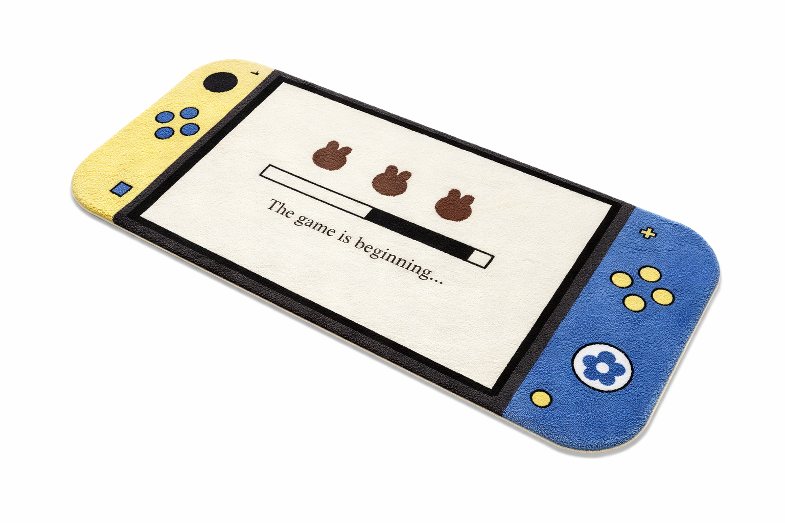 Ce tapis de sol décoratif en forme de console de jeu portable apporte une touche ludique et moderne à la chambre. Son design original reprend l’apparence d’une console avec des commandes colorées aux extrémités et un écran central illustré d’une barre de progression accompagnée du message “The game is beginning…”.