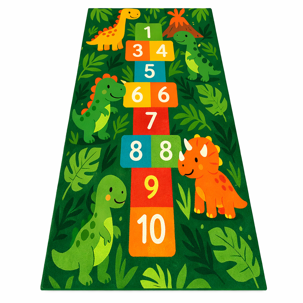 Transformez les moments de jeu de votre enfant en activité ludique et éducative avec ce tapis de marelle coloré. Conçu avec des chiffres de 1 à 10, illustrés avec des dinos, ce tapis invite les enfants à sauter, compter et apprendre tout en s’amusant.