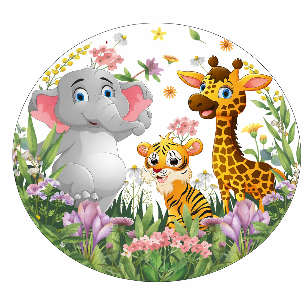 TAPIS ROND ENFANT ELEPHANT GIRAFE ET LEOPARD