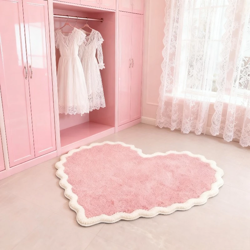 Sa texture douce et moelleuse offre une sensation agréable sous les pieds, idéale pour les moments de jeu, de lecture ou de repos. Sa forme originale en cœur et ses couleurs tendres s’intègrent parfaitement dans une chambre de fille ou un univers décoratif doux et apaisant.